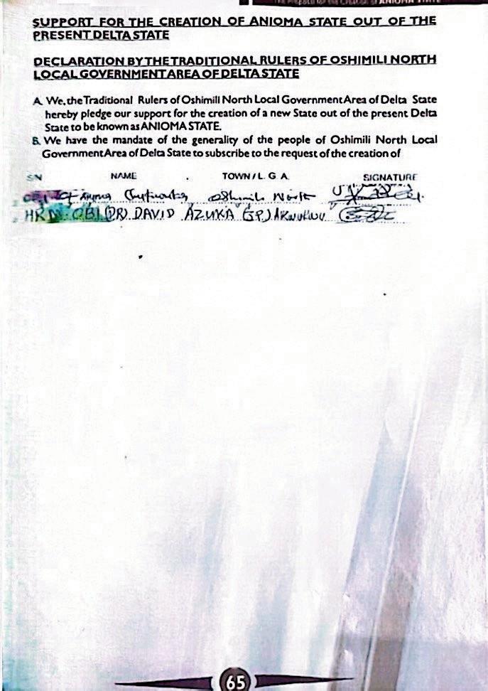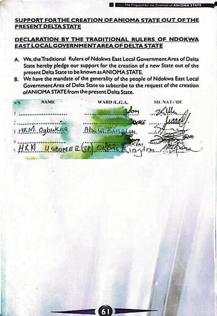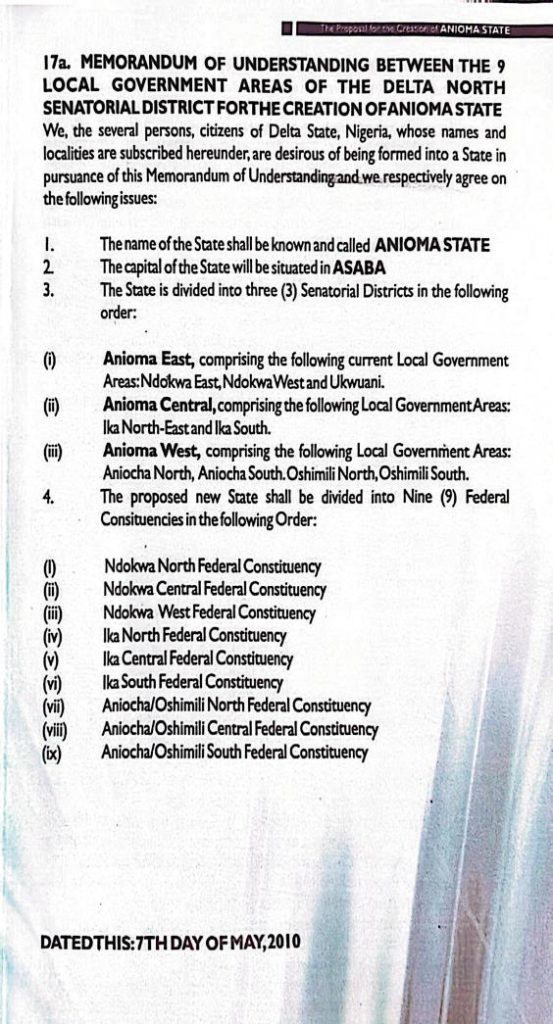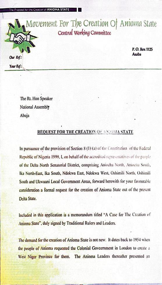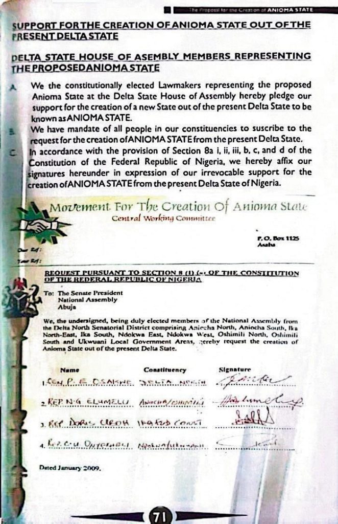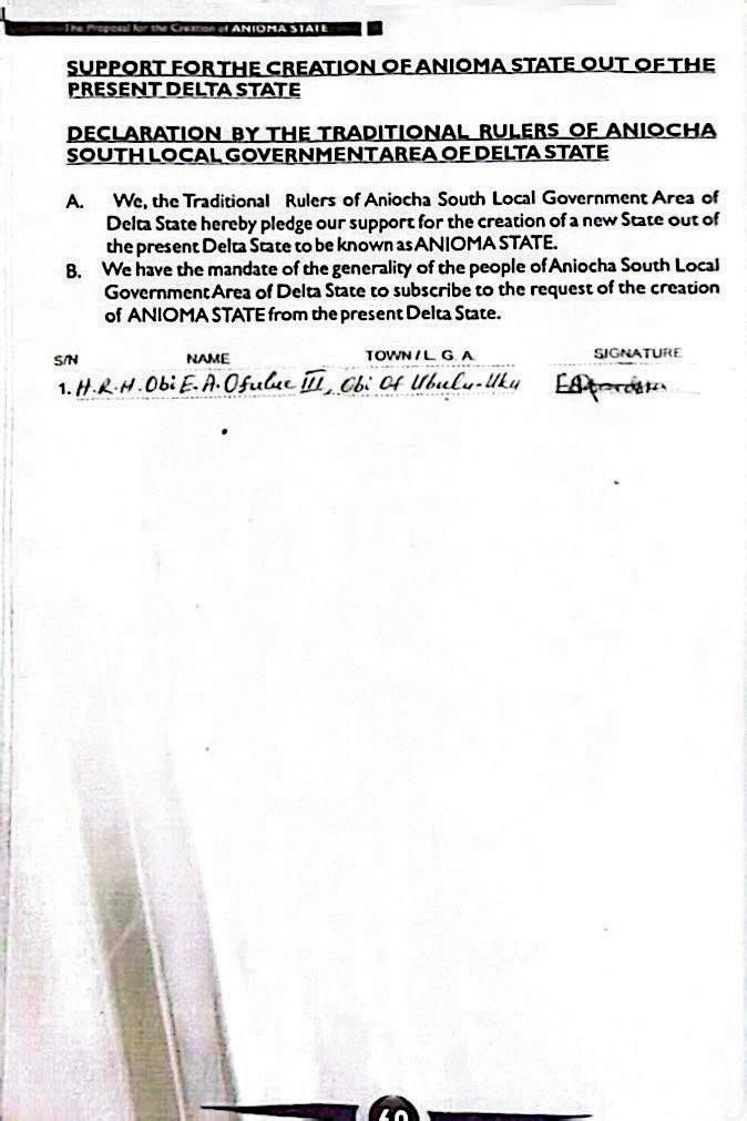 The following section draws directly from “The Proposal for the Creation of Anioma State” – a foundational document by the Central Working Committee, constituted by the Anioma Traditional Rulers in 2009, under the chairmanship of HRM Asagba (Prof) Chike Edozien. It stands as a