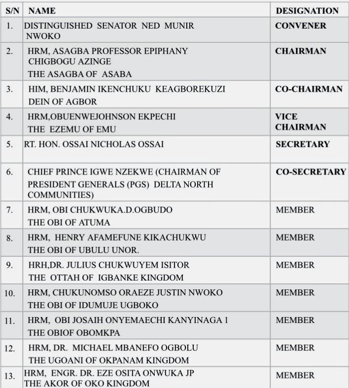 In response to the overwhelming support and momentum generated by the sponsorship of the Anioma State Creation Bill (SB. 481) in the 10th National Assembly by Senator Ned Munir Nwoko, the people of Anioma took a bold and historic step to institutionalize the advocacy through the formation of a high-level Technical Committee on the Actualization of Anioma State.