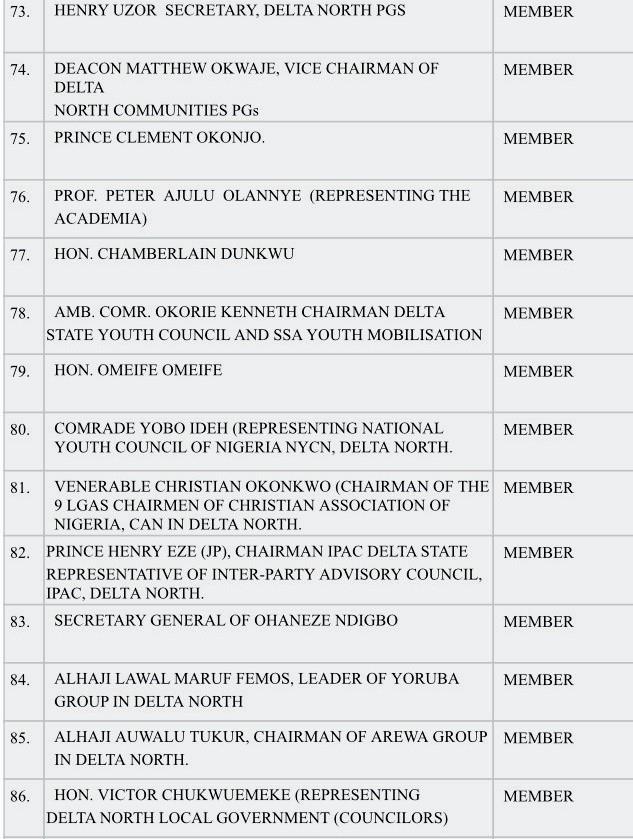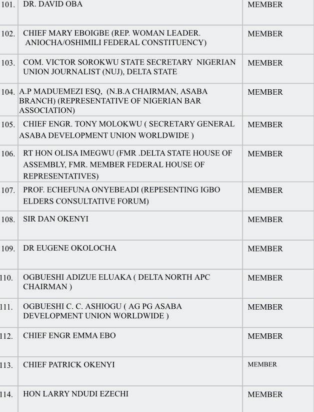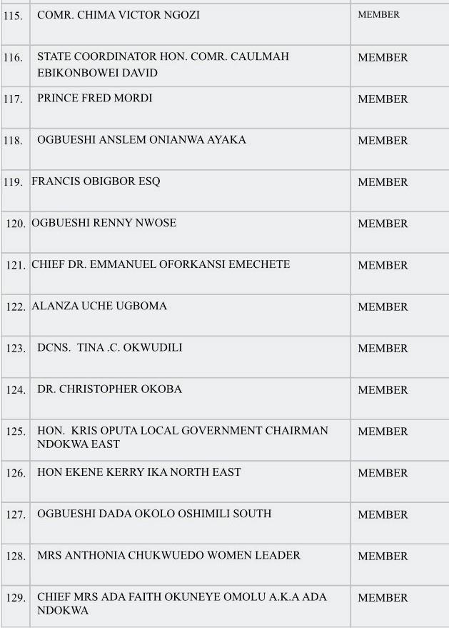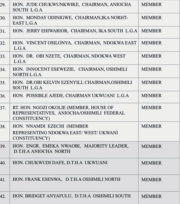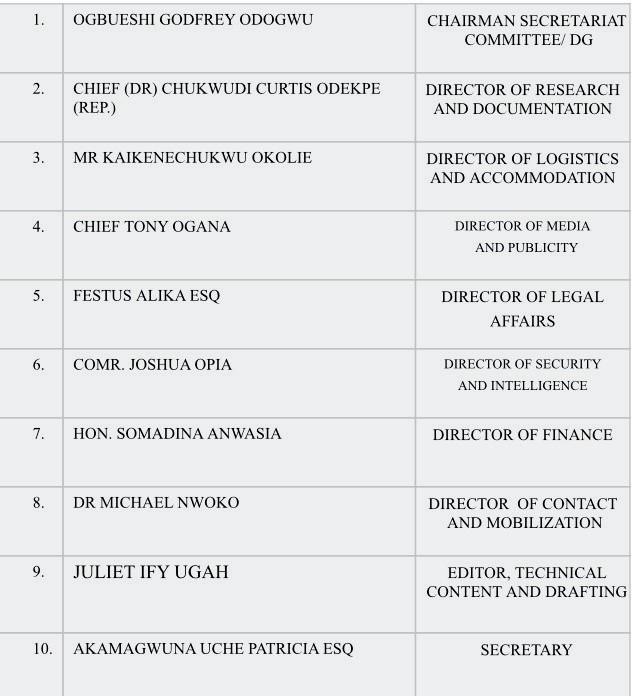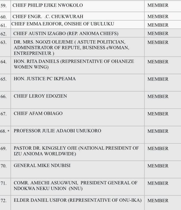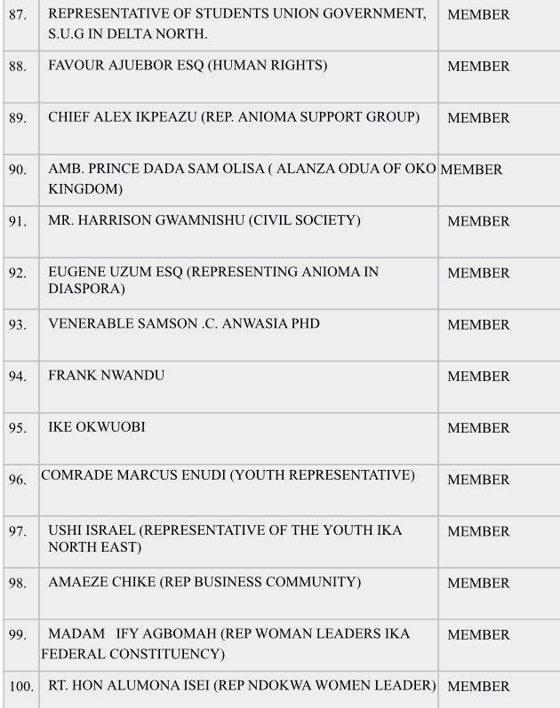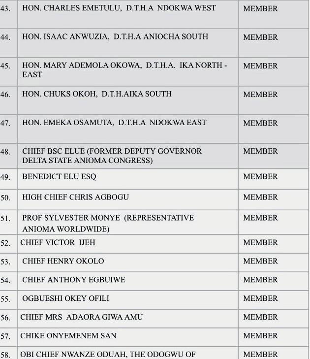 MEMBERS OF TECHNICAL COMMITTEE ON CREATION OF ANIOMA STATE